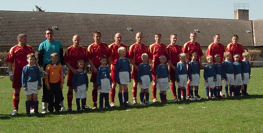 Vor dem Spiel gegen Sievershagen liefen unsere "Lütten" mit den Männern auf und zeigten stolz ihre neuen Trikots.